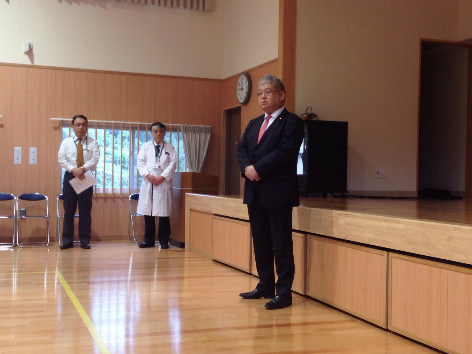 今朝は河野粕屋病院(糟屋郡宇美町)の朝礼で挨拶しました。昭和57年に先代理事長が、自然の中でゆっくり療養していただけるように山の中腹に建てた病院は、私の代になり昨年ようやく全面新築しました。1年を経て院長以下、スタッフ一同頑張ってくれています。病床利用率も私が課した目標まで一進一退しながらも、あと1%のところまできました。数多い病院の中で皆さんに選んでいただくためには、治療方針はもちろん、安全や接遇など職員一丸となった努力が必要です。幹部から朝礼に来て欲しいと言われてはいましたが、なかなか叶わずにいました。本日は予定の委員会が流れたため、急遽空いた時間で駆けつけることができました。日頃の御礼と我が国が抱える医療問題を中心にお話ししてきました。お昼の飛行機で東京へ向かいます。