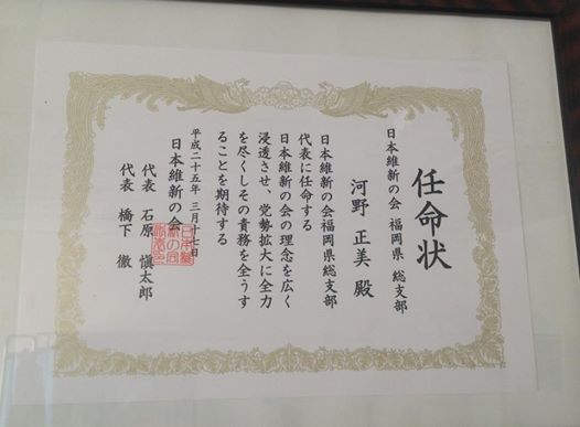 地元事務所です。今週末の党大会を前に福岡県総支部代表の任命状が届いていました。他県では既に記者会見を開いておられるところもありますが、我が県は党大会以後になりそうです。何れにせよ気持ちを引き締め頑張ります。