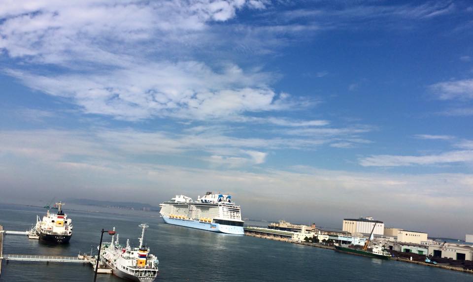 今日も博多港には大型クルーズ船。福岡の街も多くの外国人観光客で賑わっています。