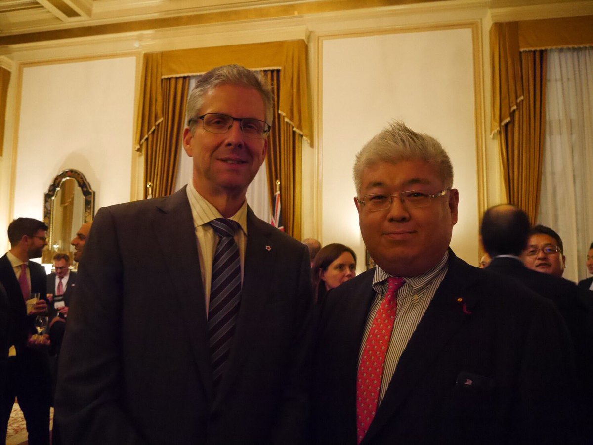 昨夕上京し、オンタリオ州首相(女性首相)の来日レセプション出席のため、カナダ大使館に向かいました。新任のイアン・バーニー駐日カナダ特命全権大使とお話しすることができました。