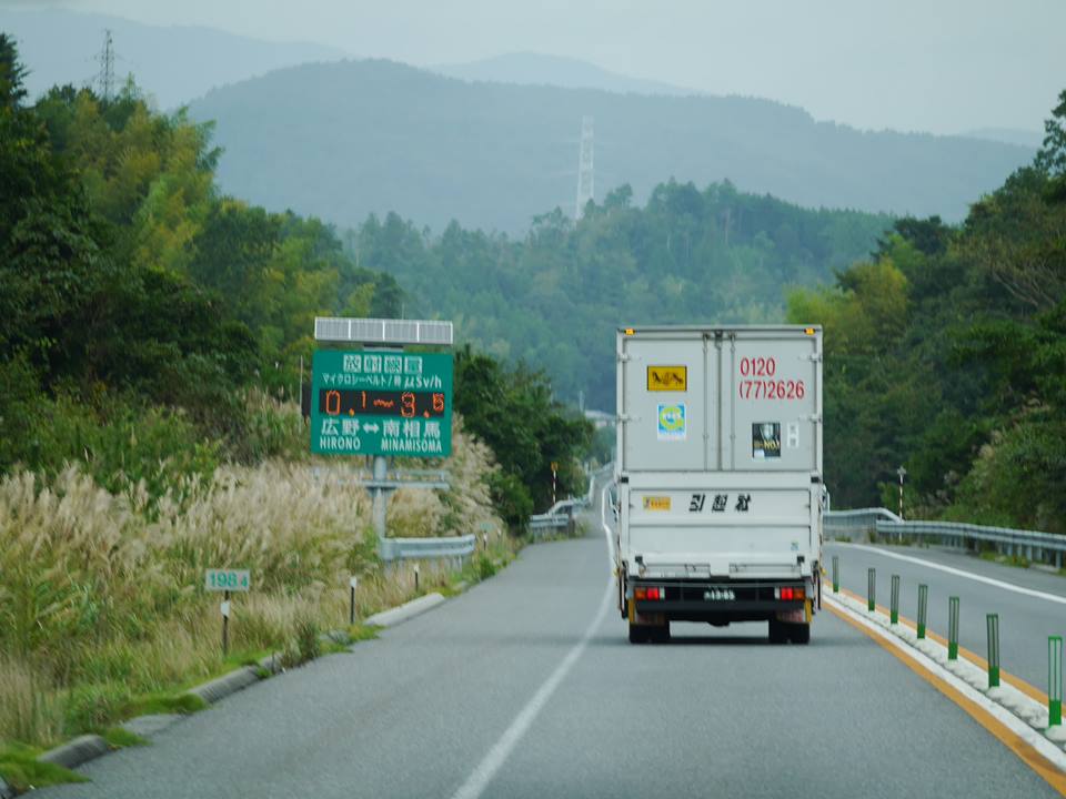 一部、放射線量の高い帰還困難区域を通過するため、道端には放射線量を知らせる表示が設置されています。